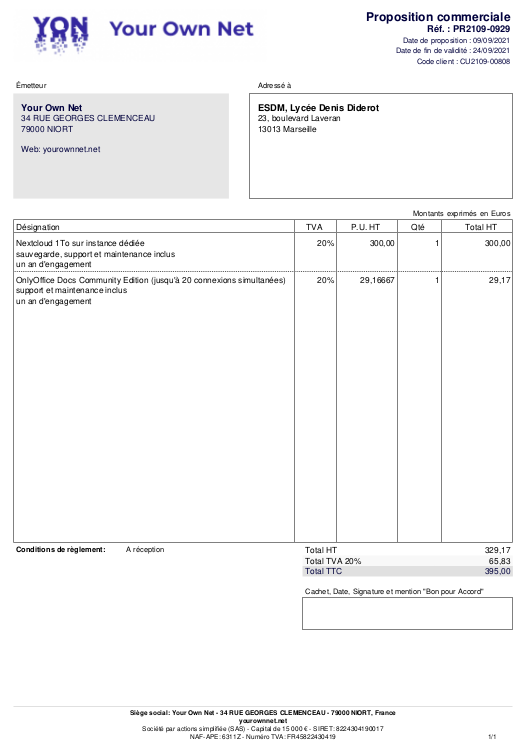 Un devis de l'hébergeur YourOwnNet est disponible sur le lien suivant :