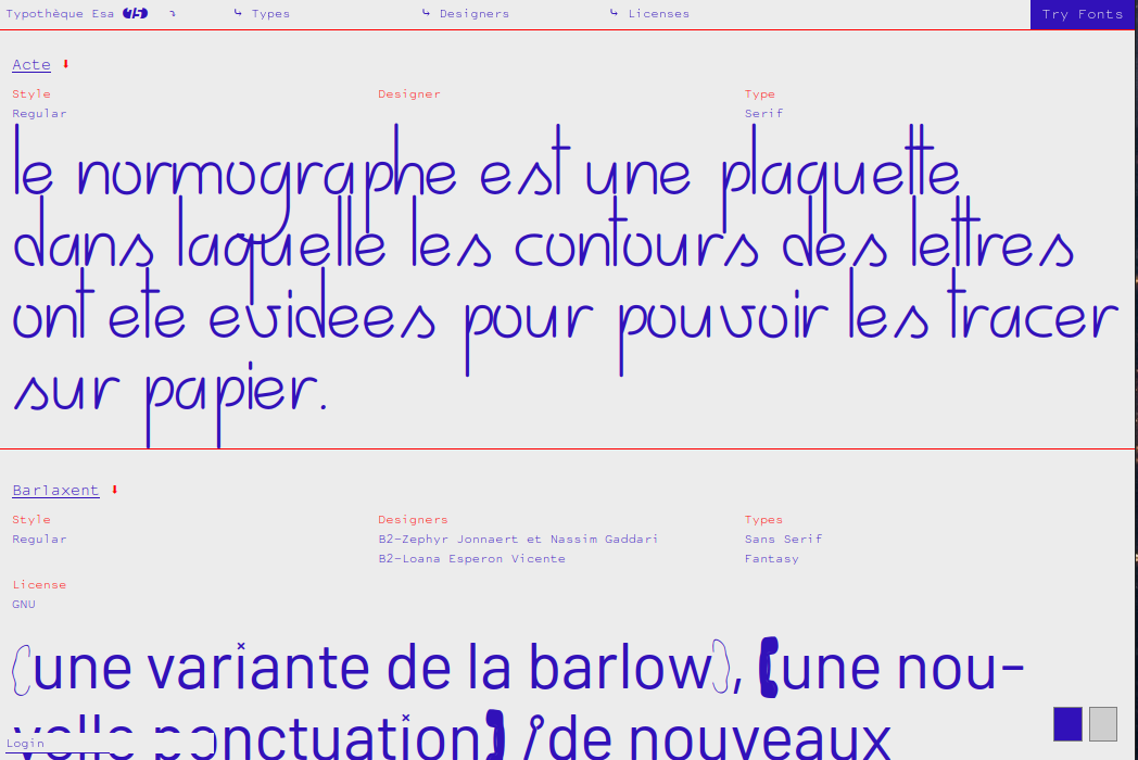 Bibliothèque numérique "open source" dans laquelle sont enregistrées toutes les typographies créées par les étudiants de l’option graphisme de l'Esa.