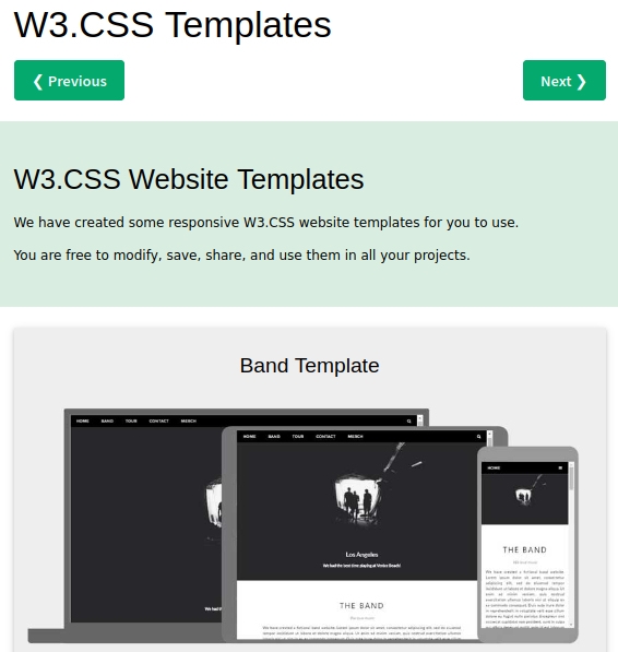 Différents templates (modèles de site) libre de droits proposés par W3Schools.
