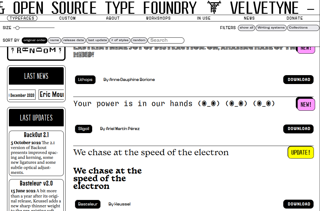 VTF, or the Velvetyne Type Foundry, designs and distributes free and open source typefaces