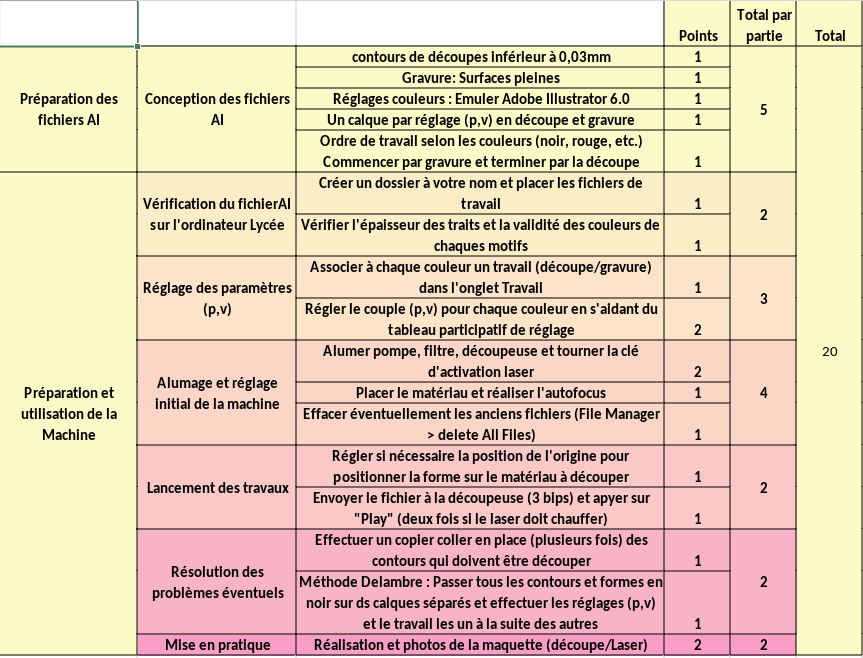 La grille d'évaluation contient tous les points à savoir pour maîtriser la conception des fichiers AI et la réalisation de travaux sur la Thermoflan V3000.